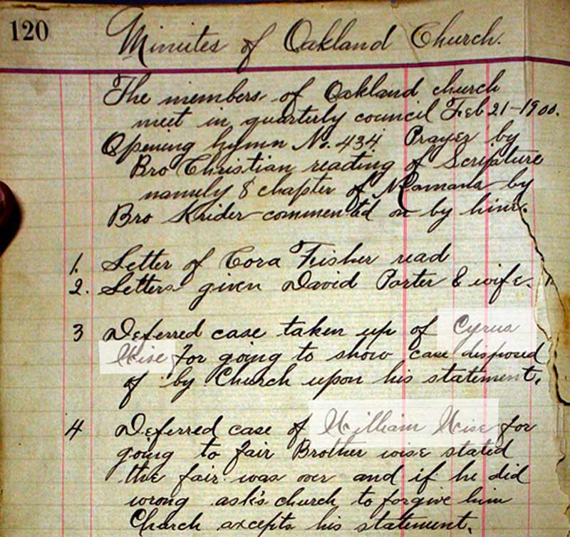 Minutes of Oakland Church (of the Brethren near Greenville, OH)